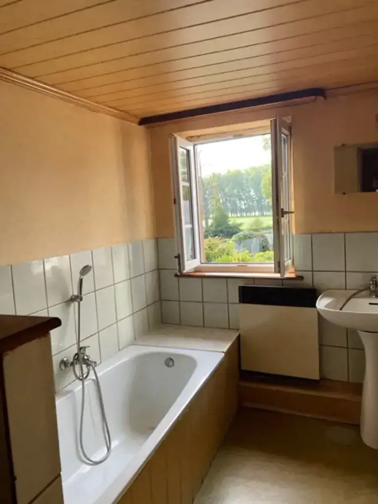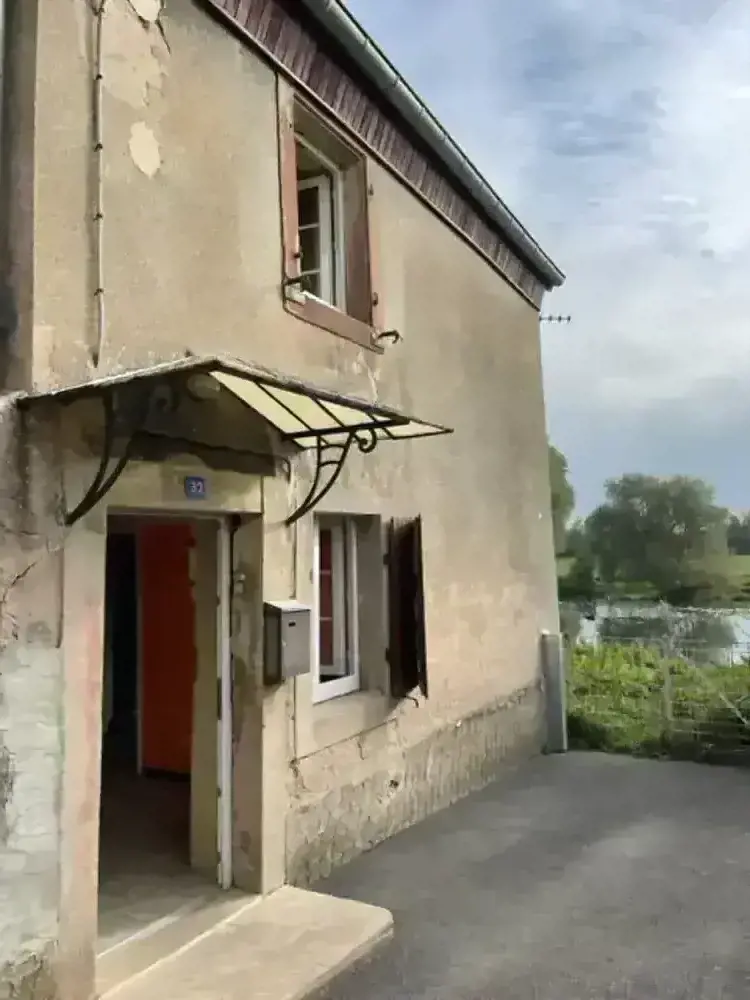Maison avec vue imprenable sur la Sarre, offrant une cuisine ouverte sur séjour, wc, sdb, comble aménageable.